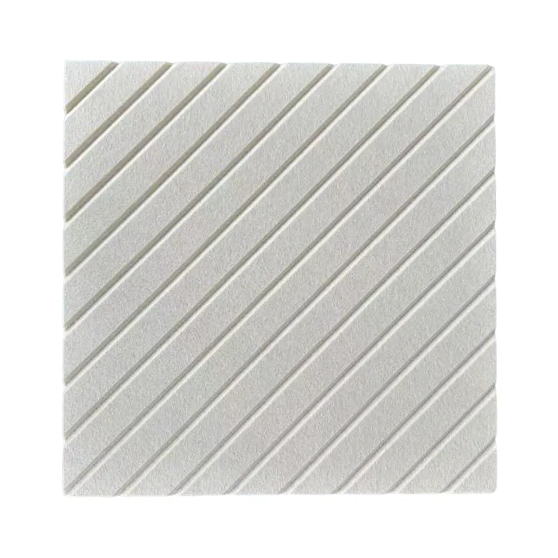 Our beige V-cut PET felt acoustic panel is super easy! As long as the wall is flat and dry, you can apply adhesive and stick it directly, no drilling required. We provide accompanying text and video instructions, even beginners can handle it;